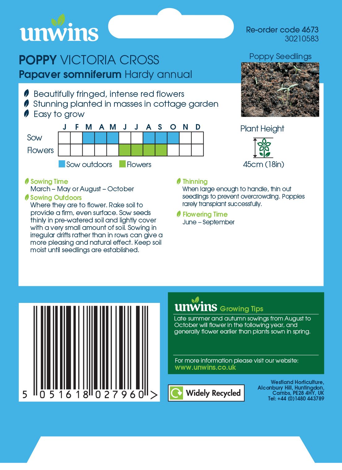 Poppy Victoria Cross Poppy Victoria Cross | Browse our wide range of high quality vegetable and flower seeds | Nationwide delivery. €3.50 Quantity: at €3.50 each Add To Basket 0 in your basket View Basket Checkout